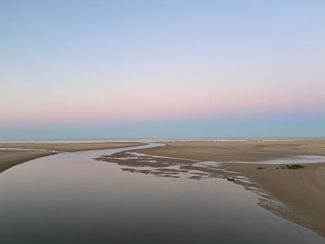 In the aftermath of storm season, bored by any prior insistence on how things should be, exhaustion is liberation. We need rest now. We let it be. We magnetise a pink blue sky. Until the winds rise again.